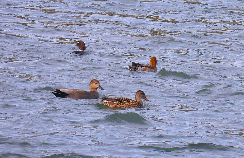 - オカヨシガモ♂♀、ヒドリガモ♂、ホオジロガモ♀