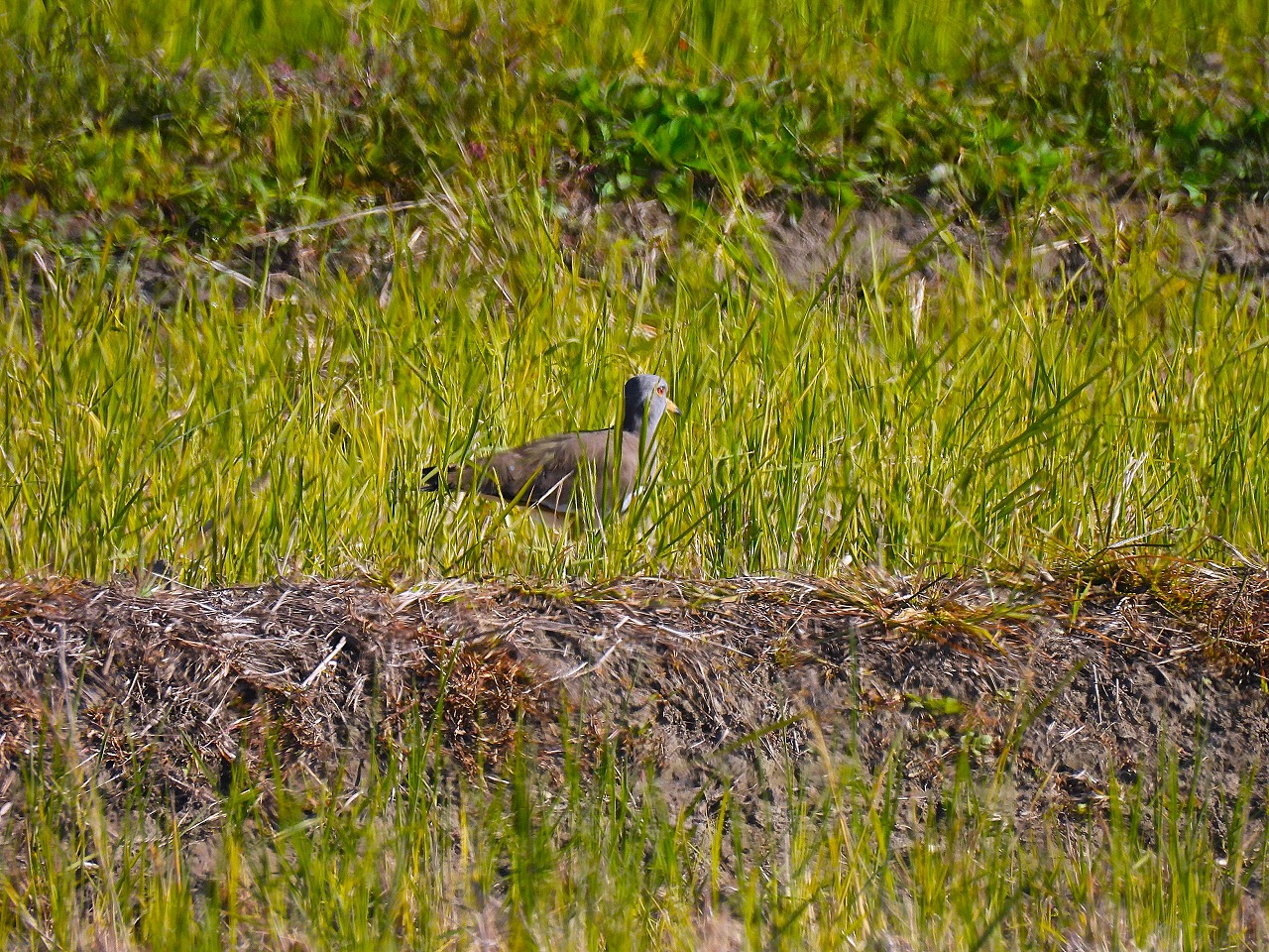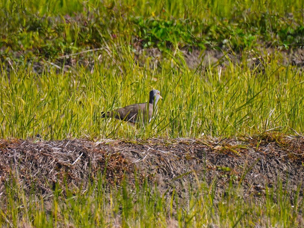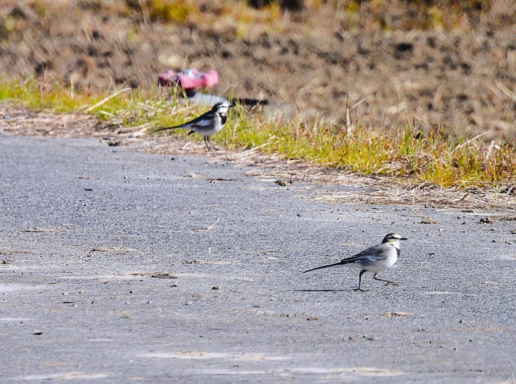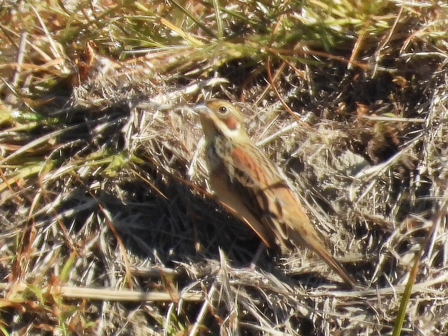 風の無い日で、琵琶湖の湖面は波も立たず平坦で、烏丸半島の湖岸からスコープで眺めると、はるか沖合いの方まで湖面にカモやオオバンなどおびただしい数の水鳥の群れが延々と連なって活動している様子が認められました。先月に続き、まだ湖面にはたくさんの水草が浮いており、それらを盛んに食べているようです。琵琶湖の水位が-56㎝まで下がっているため赤野井湾の奥には干潟や浅瀬が広がっており、オグロシギ4羽が水の中を歩きながら長い嘴を泥の中に差し込んで餌を探していました。