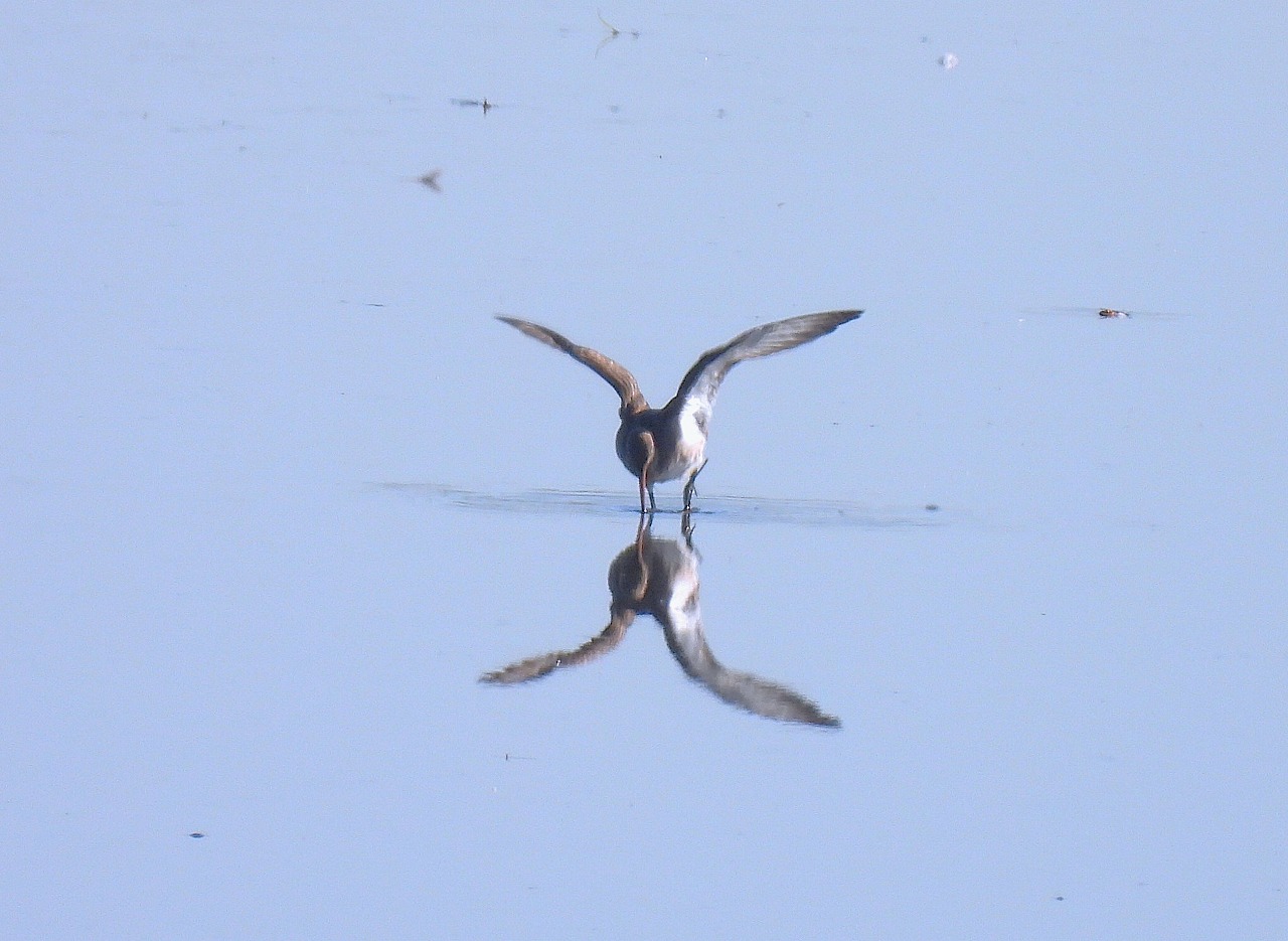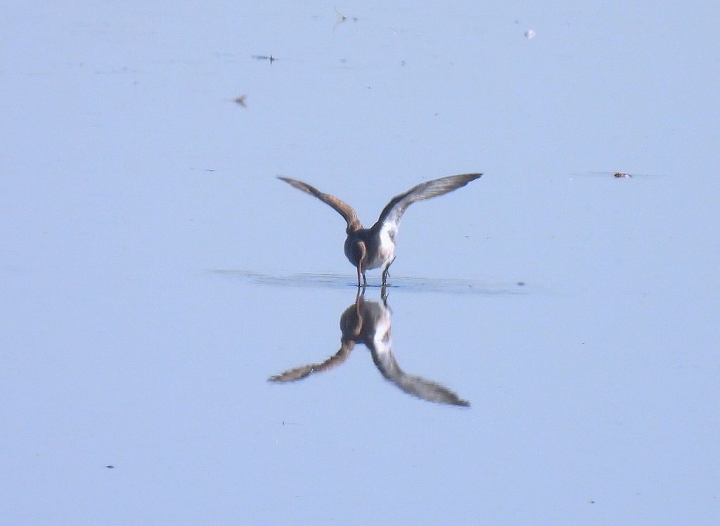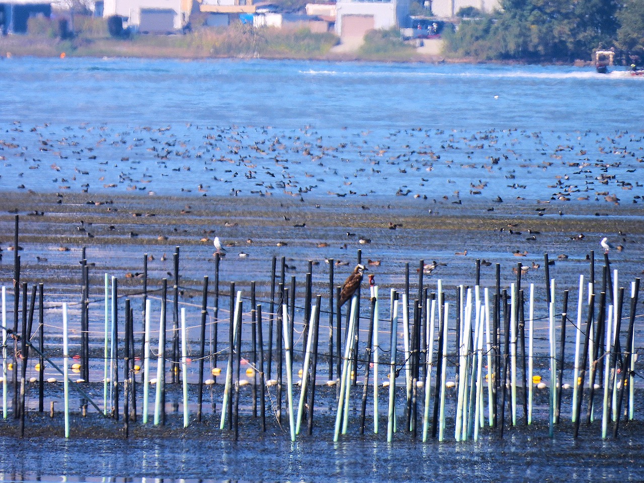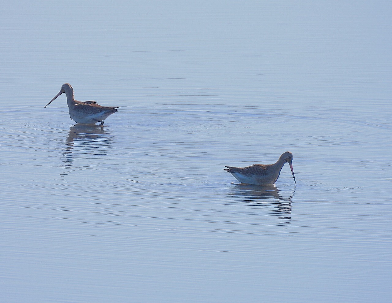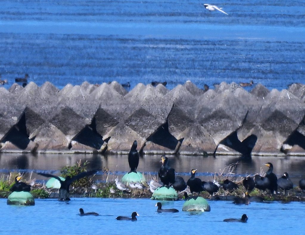 - 赤野井湾沖合い防波堤内にカワウに混じって、ハマシギ、アオアシシギ