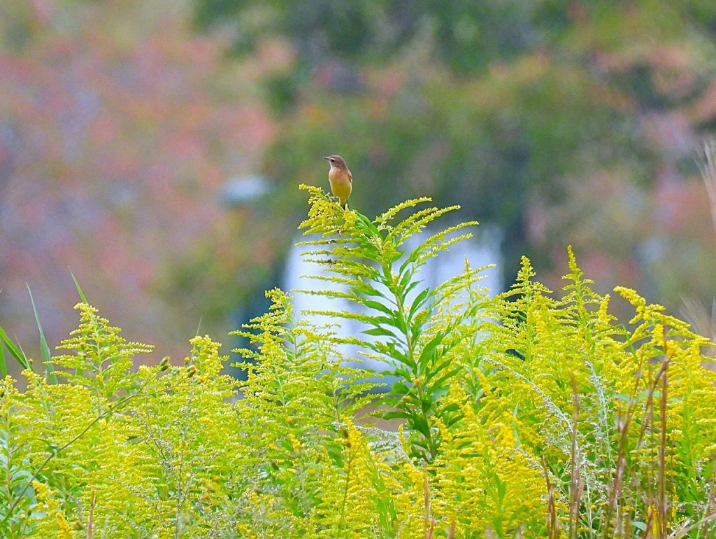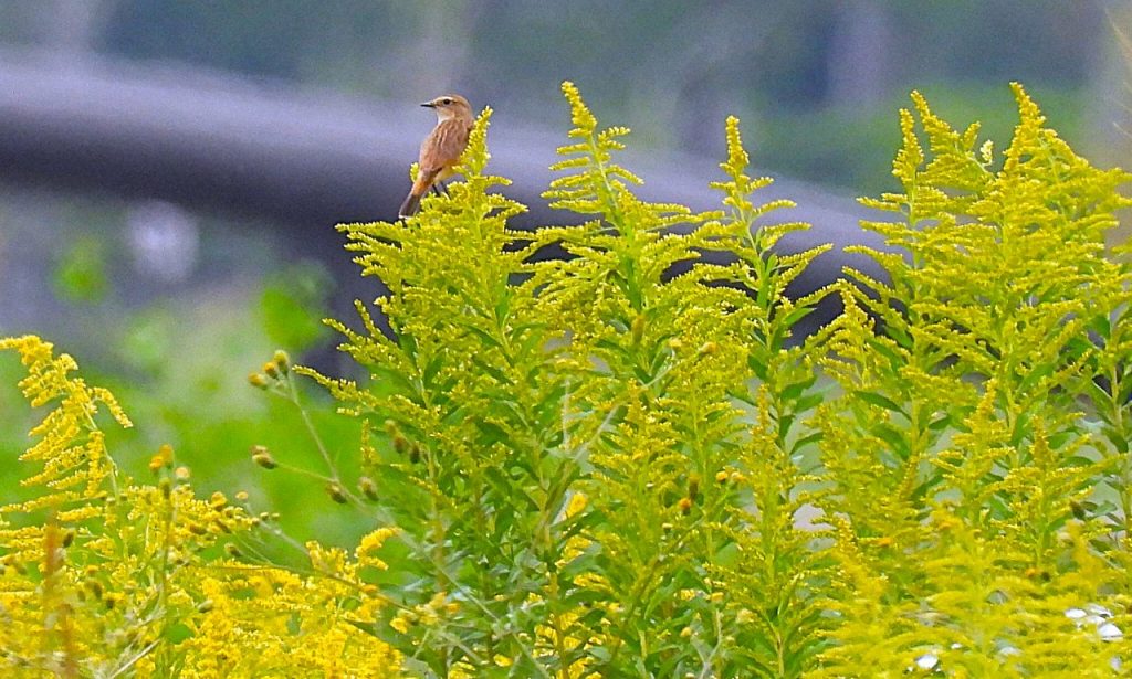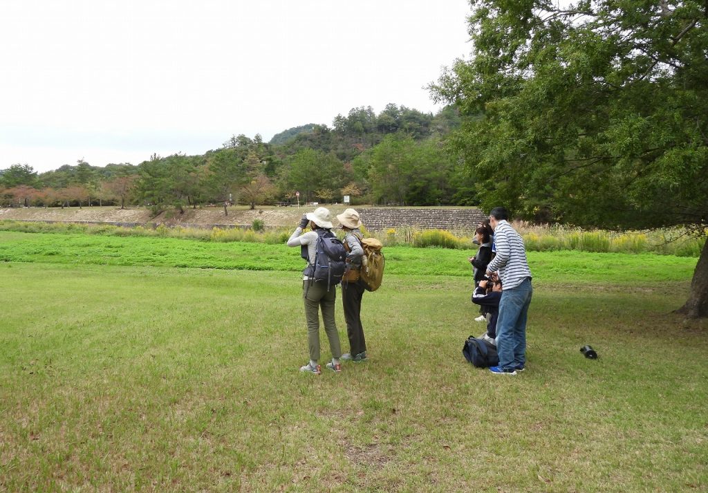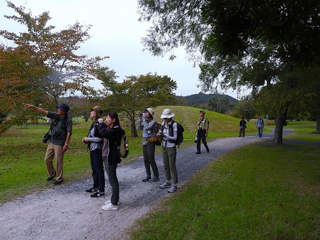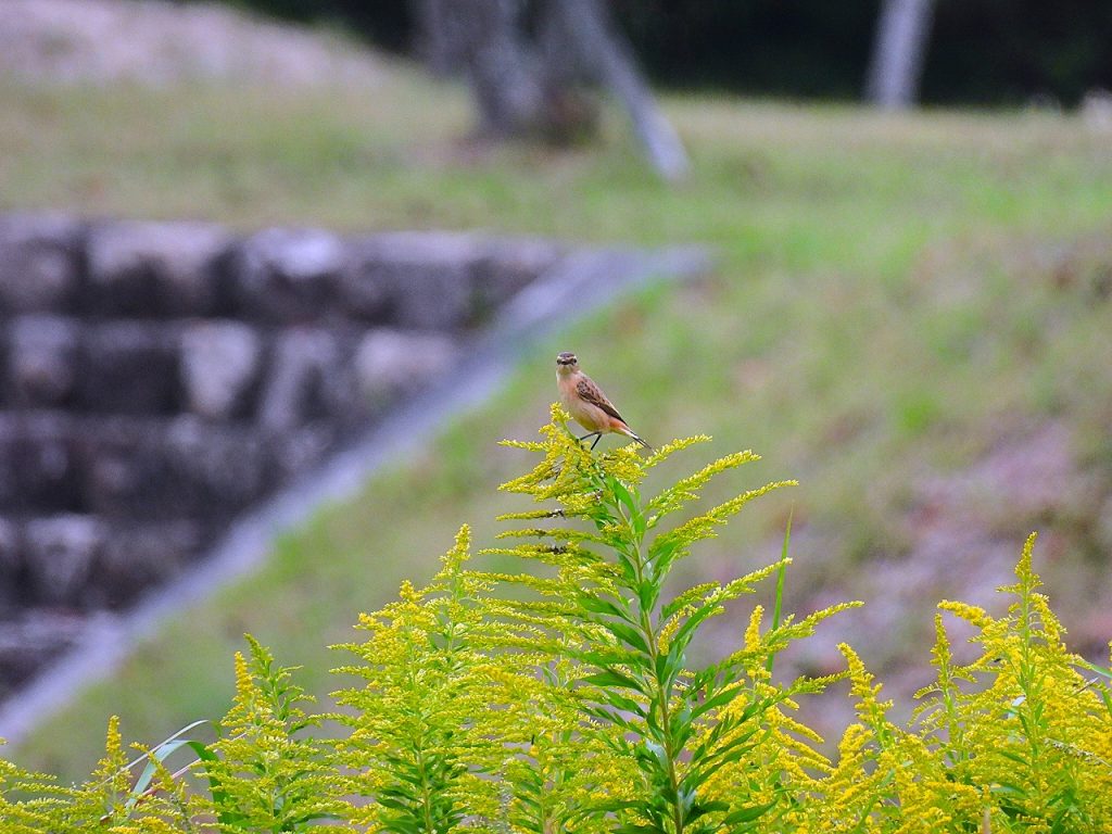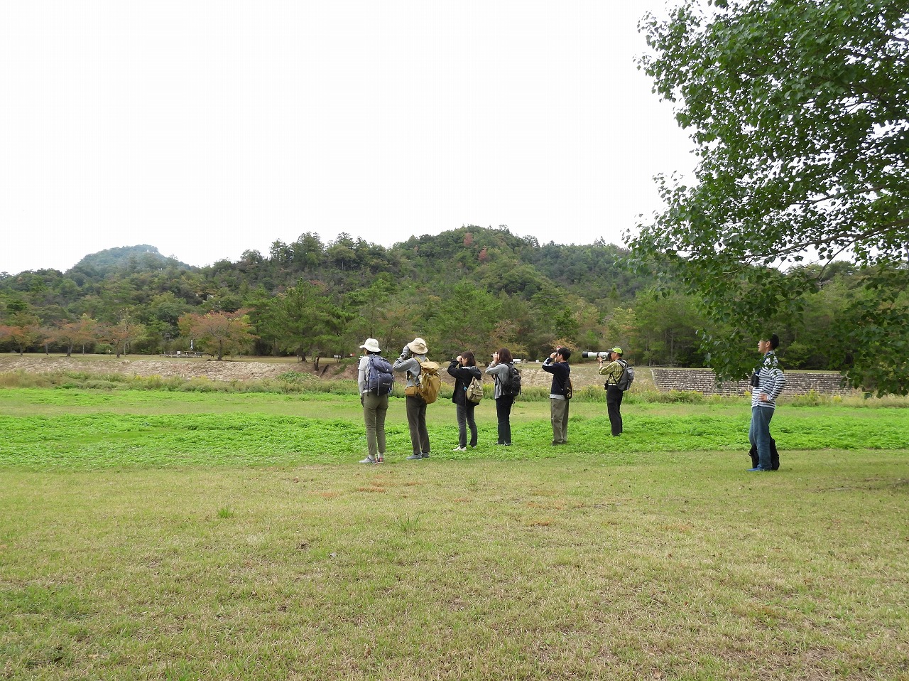山間を歩くコースでは、モズ、カラ類の混群が見られました。木の実が少ない為か、ヤマガラだけの群れも…。また移動中のキビタキ2羽が偶然にも見られました。午後からは特に目立った出現鳥はなかったのですが、最後に家棟川の護岸のセイタカアワダチソウにとまるノビタキが2羽見られました。