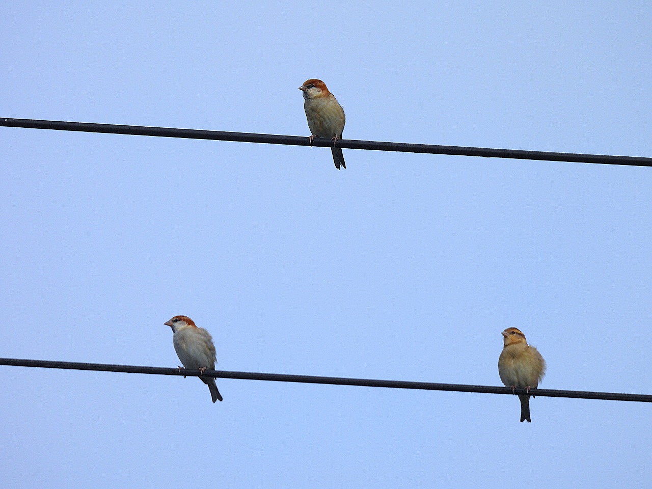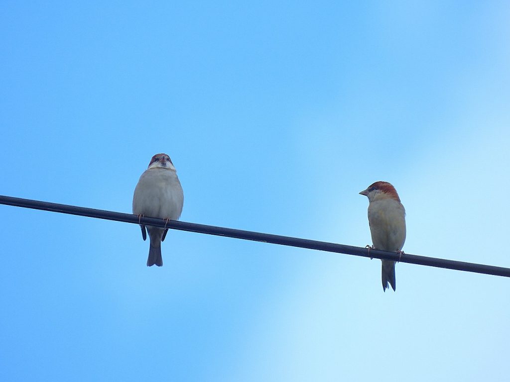 - 集合前のセンター電線にニュウナイスズメ