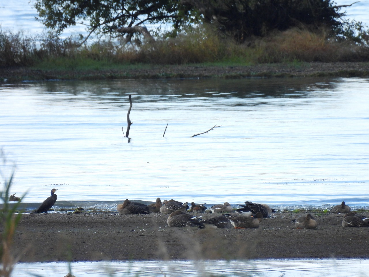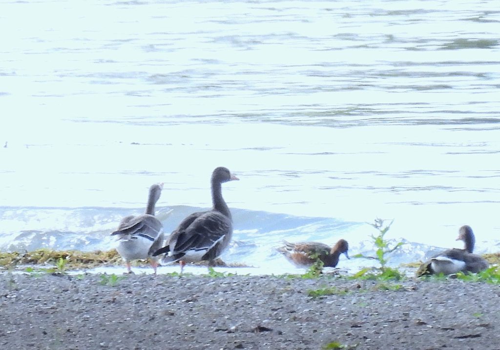 湖岸では定番のヒシクイとコハクチョウの他に観察が難しいマガンを見ることができました。