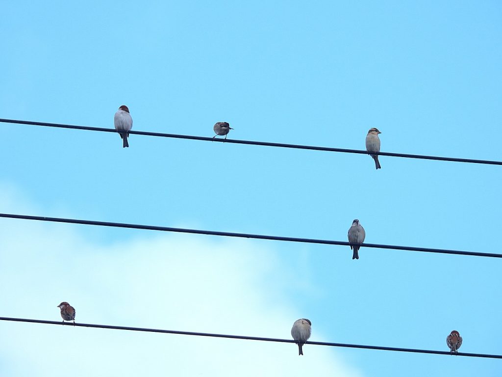 - 電線に並ぶニュウナイスズメ