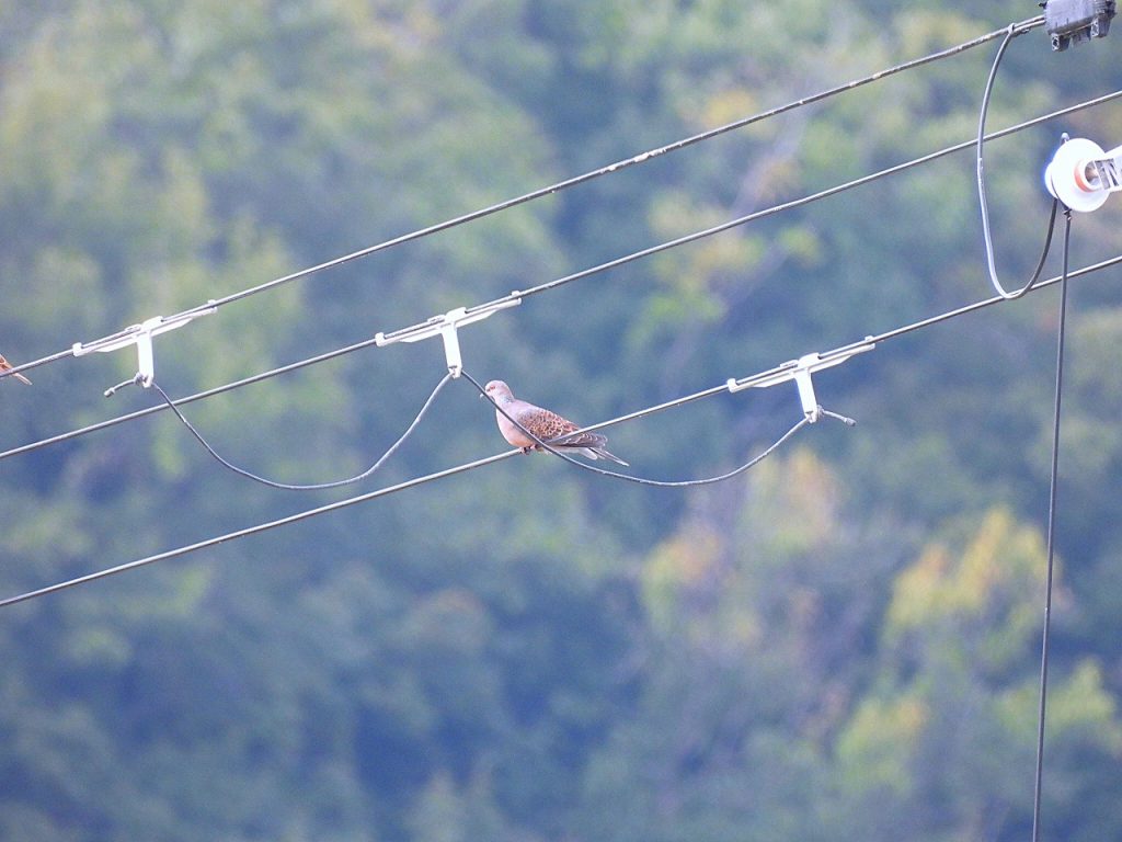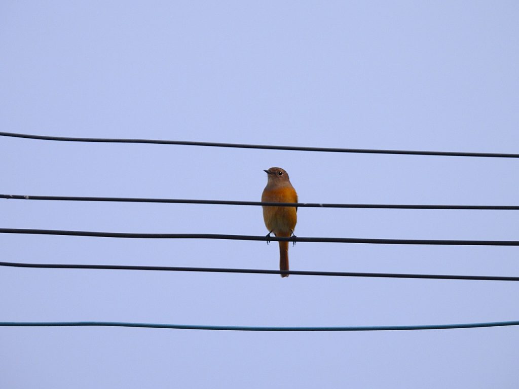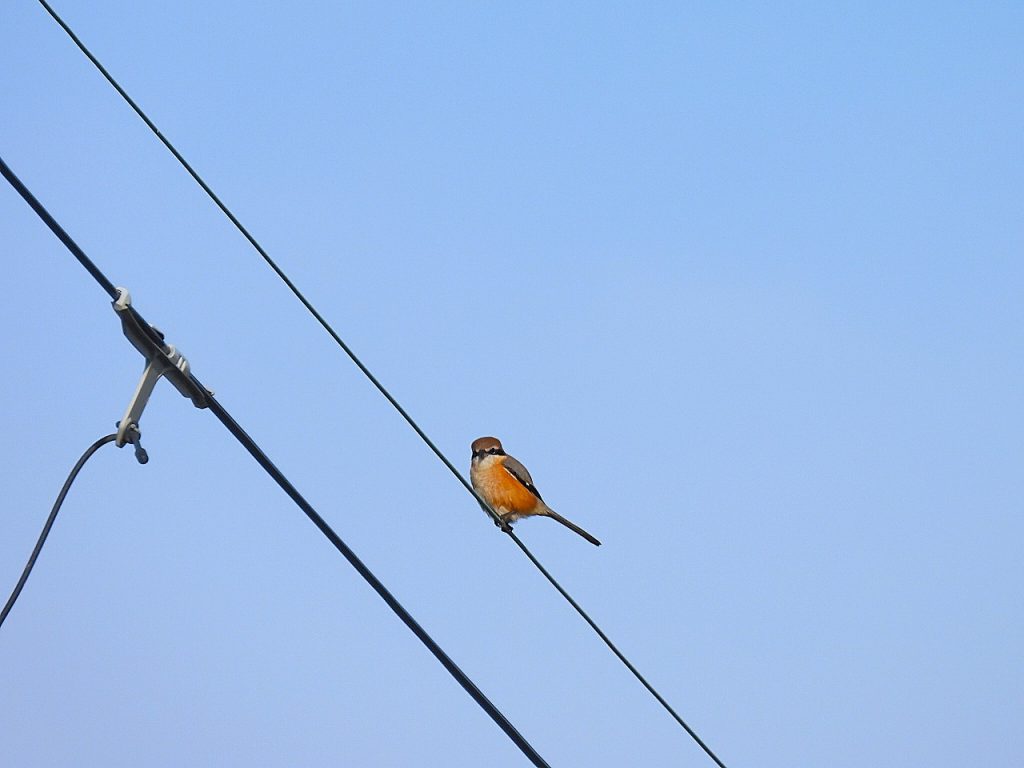 - 集合場所バス停付近電線に、モズ