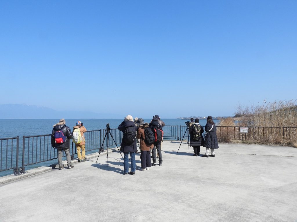 朝は霜が降りるくらい寒かったですが、陽が昇る頃には日差しが出て、お昼頃には春の陽気になりました。開始前に橋にとまるチョウゲンボウ、そして頭上を魚をつかんだミサゴが飛び、幸先良いスタートでした。